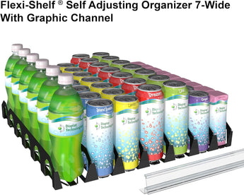 Display Technologies Flexi, Drink Organizer for Flat Shelves (8 to 32oz) - Black w/ 17” Channels - 5 per Carton, Fridge Storage for Cans, Bottles, Beers, Water and More