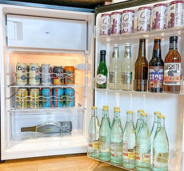 - Sping-Loaded Beverage organizers that make restocking easy