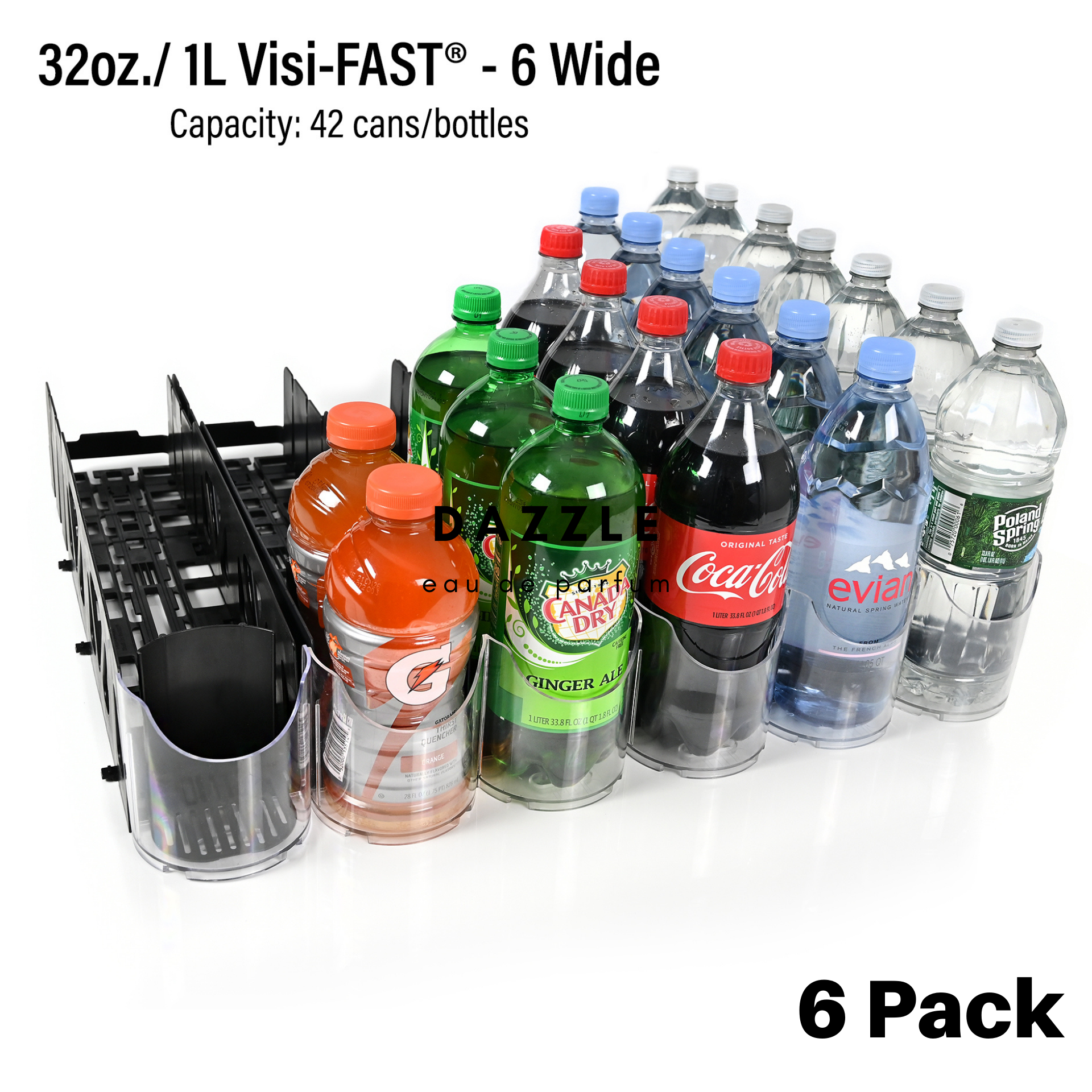 - Each 4' Section Accommodates: (72) 32oz. bottles, (84) 1 liter bottles