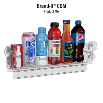 (Pack of 10) The Brand-It Cooler Door Merchandiser (CDM) is a clear polystyrene merchandiser that affixes to the cooler/freezer door with suction cups. The CDM prominently features product in front of shelving to increase impulse sales. The Brand-It has an open cavity without dividers making this CDM ideal for displaying various size and shaped packages.