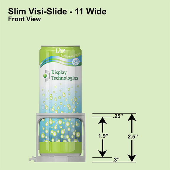 Visi-Slides are the #1 industry standard glide system for single serve merchandising. It is a gravity-fed system that sits directly on an angled shelves in cold vaults, coolers or ambient shelf applications. All of our Visi-Slides are available in different channel widths to accommodate the wide range of products in market. Additionally, each Visi-Slide can be broken or cut to achieve various widths and depths.